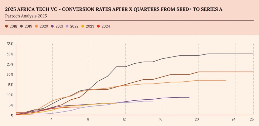 One critical area that demands aggressive education for African founders is understanding the nuances of funding stages and the imperative for achieving early profitability. Founder, do you know what you’re signing off on at each stage? Do you really know? The Series A crunch is a stark reality: the conversion rate from seed to Series A notably plummeted from a peak of 35% for the 2019 cohort to a low of a mere 5% for the 2023 cohort, with marginal recovery in subsequent cohorts. As an early-stage company, you’re compelled to prioritize profitability sooner rather than later.